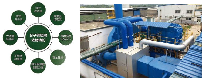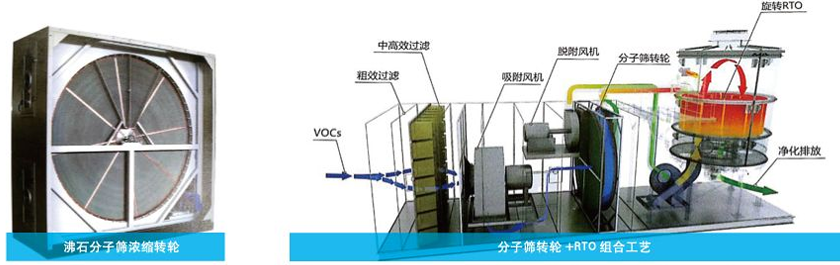 沸石轉輪是將大風量、低濃度的廢氣濃縮到高濃度、小風量的廢氣,從而減少設備的投入費用和運行成本,提高voc廢氣的高效率處理。